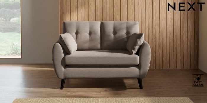 7.3.1 Buy Wilson Buttoned Back 2 Seater Small Sofa Fine Chenille Easy Clean Mid Taupe Brown Retro Tapered - Dark from the Next UK online shop Click here to use our accessible website