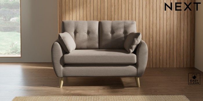 7.2.10 Buy Wilson Buttoned Back 2 Seater Small Sofa Fine Chenille Easy Clean Mid Taupe Brown Retro Tapered - Light from the Next UK online shop Click here to use our accessible website