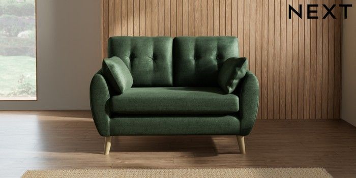 7.2.10 Buy Wilson Buttoned Back 2 Seater Small Sofa Luxe Chenille Dark Green Retro Tapered - Light from the Next UK online shop Click here to use our accessible website