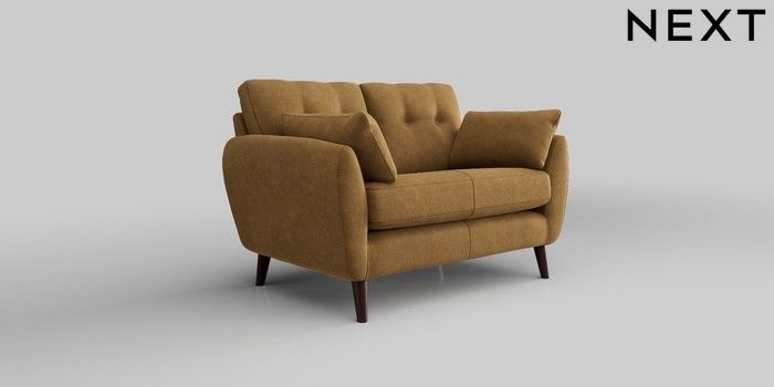 6.12.1 Buy Wilson Buttoned Back 2 Seater Small Sofa Luxe Chenille Honey Yellow Retro Tapered - Dark Brown from the Next UK online shop Click here to use our accessible website