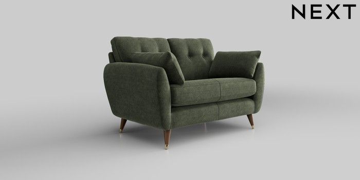6.12.1 Buy Wilson Buttoned Back 2 Seater Small Sofa Luxe Chenille Mid Green Low Retro Tapered Metal Cap - Mid from the Next UK online shop Click here to use our accessible website