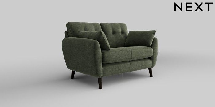 6.12.1 Buy Wilson Buttoned Back 2 Seater Small Sofa Luxe Chenille Mid Green Retro Tapered - Dark from the Next UK online shop Click here to use our accessible website
