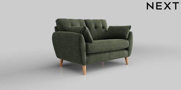 6.12.1 Buy Wilson Buttoned Back 2 Seater Small Sofa Luxe Chenille Mid Green Retro Tapered - Light from the Next UK online shop Click here to use our accessible website