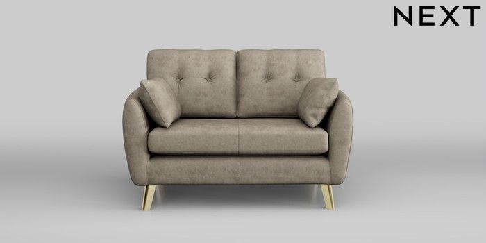 6.12.1 Buy Wilson Buttoned Back 2 Seater Small Sofa Monza Faux Leather Easy Clean Mink Brown Metal Tapered - Gold from the Next UK online shop Click here to use our accessible website