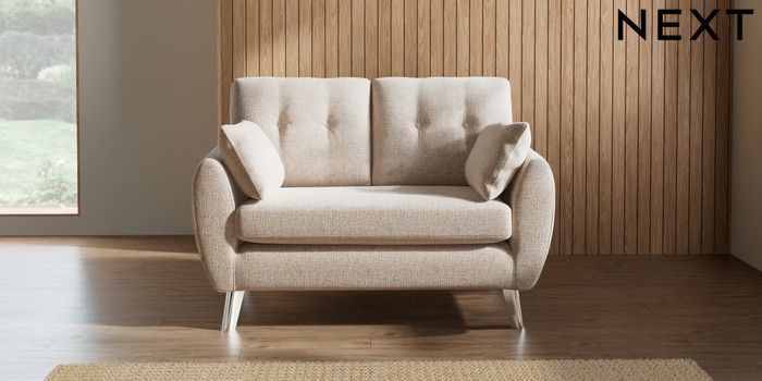 7.2.6 Buy Wilson Buttoned Back 2 Seater Small Sofa Multi Weave Mid Natural Metal Tapered - Chrome from the Next UK online shop Click here to use our accessible website