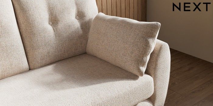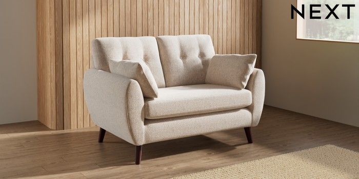 7.3.1 Buy Wilson Buttoned Back 2 Seater Small Sofa Multi Weave Mid Natural Retro Tapered - Dark Brown from the Next UK online shop
