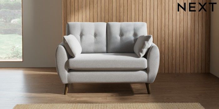 7.2.10 Buy Wilson Buttoned Back 2 Seater Small Sofa Natural Mix Light Grey Retro Tapered - Mid from the Next UK online shop Click here to use our accessible website