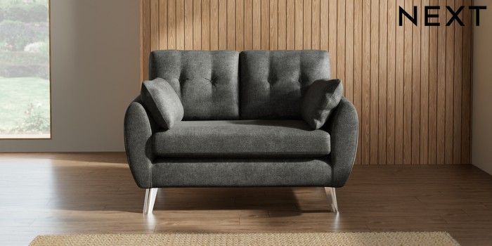 7.2.10 Buy Wilson Buttoned Back 2 Seater Small Sofa Plush Chenille Dark Grey Metal Tapered - Chrome from the Next UK online shop Click here to use our accessible website