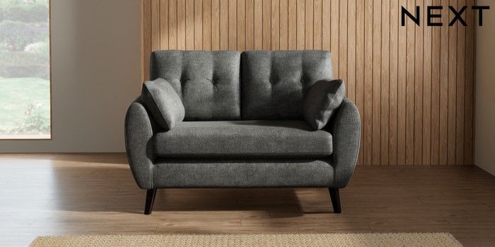 7.2.10 Buy Wilson Buttoned Back 2 Seater Small Sofa Plush Chenille Dark Grey Retro Tapered - Dark from the Next UK online shop Click here to use our accessible website