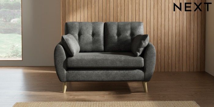 7.2.10 Buy Wilson Buttoned Back 2 Seater Small Sofa Plush Chenille Dark Grey Retro Tapered - Light from the Next UK online shop Click here to use our accessible website
