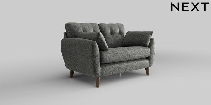 6.12.1 Buy Wilson Buttoned Back 2 Seater Small Sofa Plush Chenille Dark Grey Retro Tapered - Mid from the Next UK online shop Click here to use our accessible website