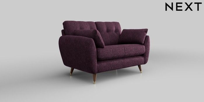 6.12.13 Buy Wilson Buttoned Back 2 Seater Small Sofa Plush Chenille Dark Plum Purple Low Retro Tapered Metal Cap - Mid from the Next UK online shop Click here to use our accessible website