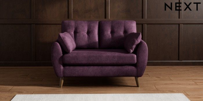 7.2.10 Buy Wilson Buttoned Back 2 Seater Small Sofa Plush Chenille Dark Plum Purple Retro Tapered - Mid from the Next UK online shop Click here to use our accessible website