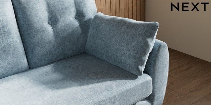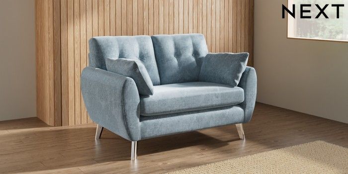 7.3.1 Buy Wilson Buttoned Back 2 Seater Small Sofa Plush Chenille Light Blue Metal Tapered - Chrome from the Next UK online shop
