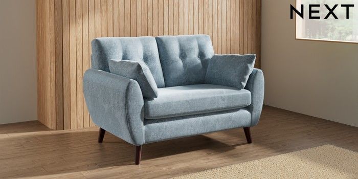 7.3.1 Buy Wilson Buttoned Back 2 Seater Small Sofa Plush Chenille Light Blue Retro Tapered - Dark Brown from the Next UK online shop