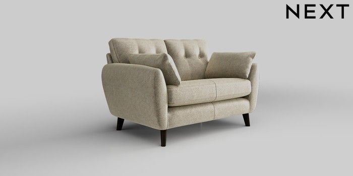 6.12.1 Buy Wilson Buttoned Back 2 Seater Small Sofa Plush Chenille Light Natural Retro Tapered - Dark from the Next UK online shop Click here to use our accessible website