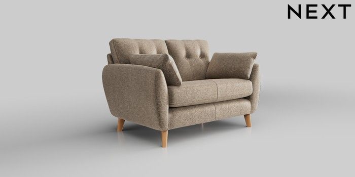 6.12.1 Buy Wilson Buttoned Back 2 Seater Small Sofa Plush Chenille Mid Natural Retro Tapered - Light from the Next UK online shop Click here to use our accessible website