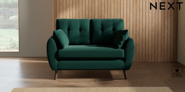 7.3.1 Buy Wilson Buttoned Back 2 Seater Small Sofa Plush Velvet Easy Clean Bottle Green Retro Tapered - Mid from the Next UK online shop Click here to use our accessible website