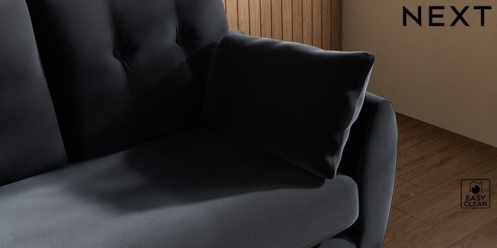 7.3.1 Buy Wilson Buttoned Back 2 Seater Small Sofa Plush Velvet Easy Clean Charcoal Grey Low Retro Tapered Metal Cap - Mid from the Next UK online shop Click here to use our accessible website