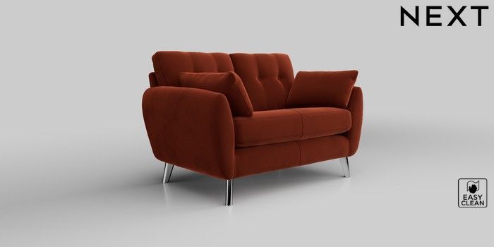 6.12.13 Buy Wilson Buttoned Back 2 Seater Small Sofa Plush Velvet Easy Clean Ginger Orange Metal Tapered - Chrome from the Next UK online shop Click here to use our accessible website