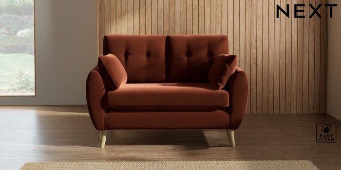 7.2.10 Buy Wilson Buttoned Back 2 Seater Small Sofa Plush Velvet Easy Clean Ginger Orange Retro Tapered - Light from the Next UK online shop Click here to use our accessible website