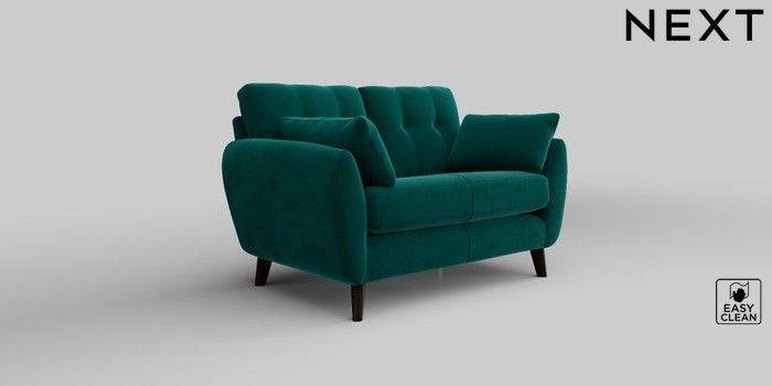 6.12.1 Buy Wilson Buttoned Back 2 Seater Small Sofa Plush Velvet Easy Clean Juniper Green Retro Tapered - Dark from the Next UK online shop Click here to use our accessible website
