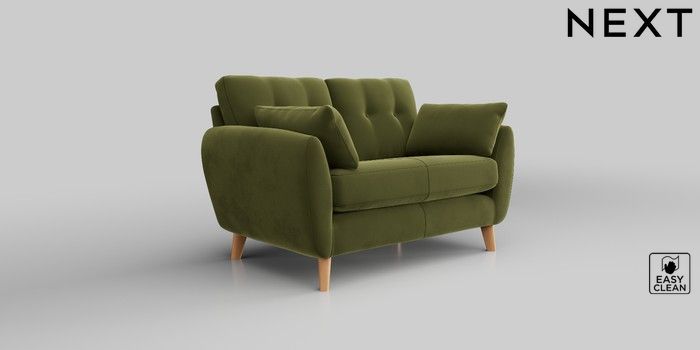 6.12.13 Buy Wilson Buttoned Back 2 Seater Small Sofa Plush Velvet Easy Clean Mid Olive Green Retro Tapered - Light from the Next UK online shop Click here to use our accessible website