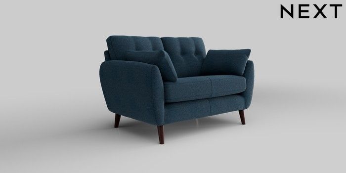 6.12.1 Buy Wilson Buttoned Back 2 Seater Small Sofa Ripple Chenille Dark Blue Retro Tapered - Dark Brown from the Next UK online shop Click here to use our accessible website