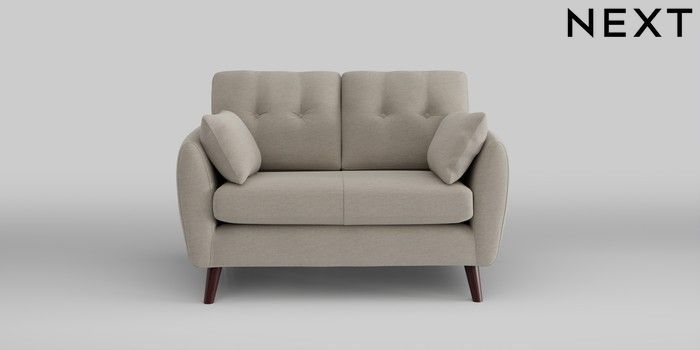 6.12.1 Buy Wilson Buttoned Back 2 Seater Small Sofa Ripple Chenille Light Natural Retro Tapered - Dark Brown from the Next UK online shop Click here to use our accessible website