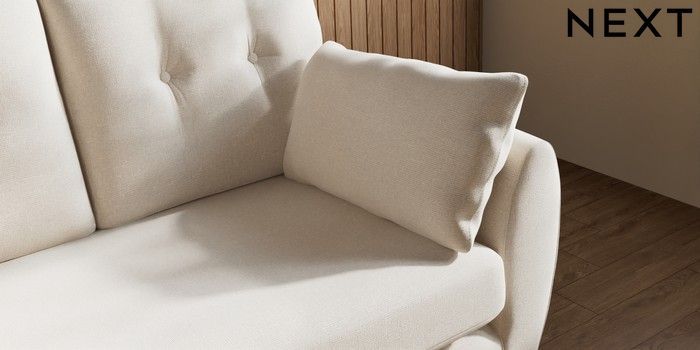 7.3.1 Buy Wilson Buttoned Back 2 Seater Small Sofa Studio Chenille Oyster Metal Tapered - Chrome from the Next UK online shop