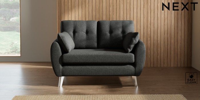 7.3.1 Buy Wilson Buttoned Back 2 Seater Small Sofa Tweedy Blend Easy Clean Charcoal Grey Metal Tapered - Chrome from the Next UK online shop Click here to use our accessible website