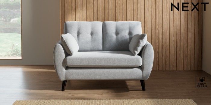 7.2.10 Buy Wilson Buttoned Back 2 Seater Small Sofa Tweedy Blend Easy Clean Light Silver Grey Retro Tapered - Dark from the Next UK online shop Click here to use our accessible website