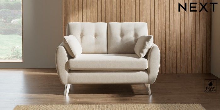7.3.1 Buy Wilson Buttoned Back 2 Seater Small Sofa Tweedy Blend Easy Clean Oyster Metal Tapered - Chrome from the Next UK online shop Click here to use our accessible website