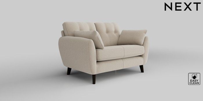 6.12.1 Buy Wilson Buttoned Back 2 Seater Small Sofa Tweedy Blend Easy Clean Oyster Retro Tapered - Dark from the Next UK online shop Click here to use our accessible website