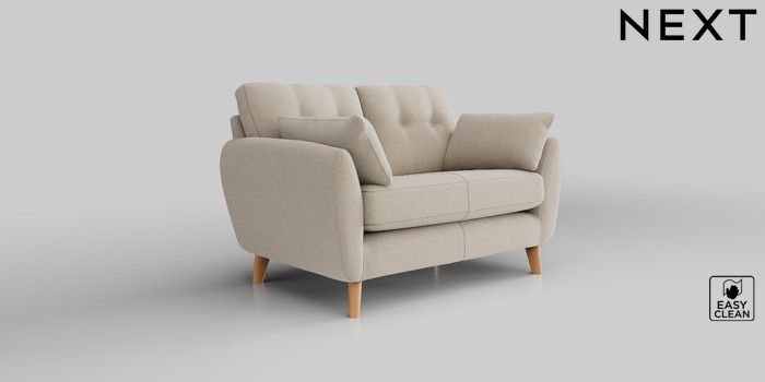 6.12.1 Buy Wilson Buttoned Back 2 Seater Small Sofa Tweedy Blend Easy Clean Oyster Retro Tapered - Light from the Next UK online shop Click here to use our accessible website