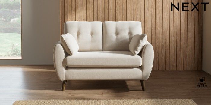 7.2.10 Buy Wilson Buttoned Back 2 Seater Small Sofa Tweedy Blend Easy Clean Oyster Retro Tapered - Mid from the Next UK online shop Click here to use our accessible website