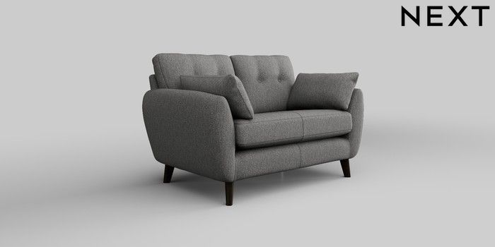 6.12.1 Buy Wilson Buttoned Back 2 Seater Small Sofa Tweedy Chenille Dark Grey Retro Tapered - Dark from the Next UK online shop Click here to use our accessible website