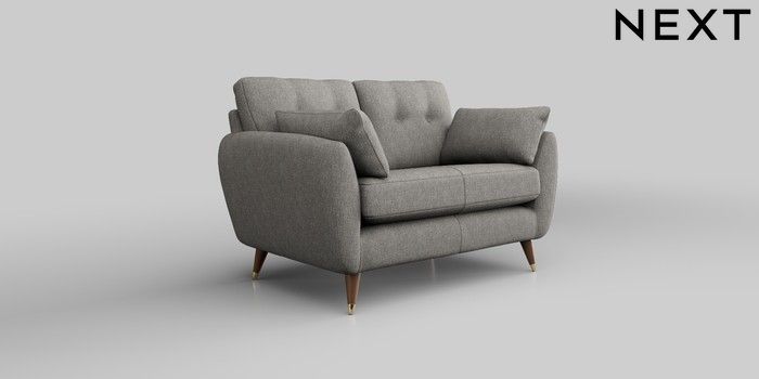6.12.1 Buy Wilson Buttoned Back 2 Seater Small Sofa Tweedy Chenille Mid Grey Low Retro Tapered Metal Cap - Mid from the Next UK online shop Click here to use our accessible website