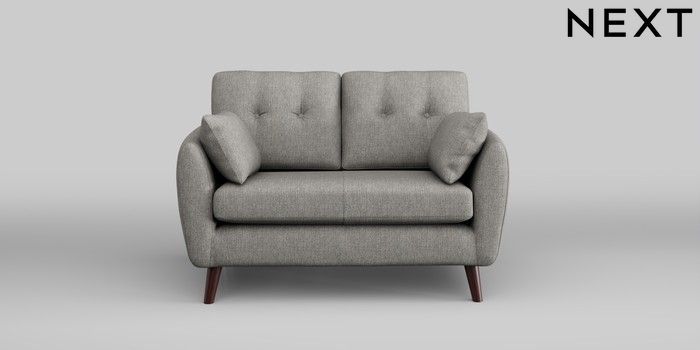 6.12.1 Buy Wilson Buttoned Back 2 Seater Small Sofa Tweedy Chenille Mid Grey Retro Tapered - Dark Brown from the Next UK online shop Click here to use our accessible website