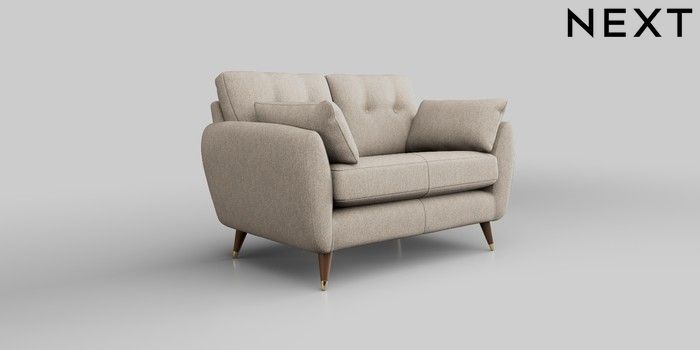 6.12.13 Buy Wilson Buttoned Back 2 Seater Small Sofa Tweedy Chenille Mid Natural Low Retro Tapered Metal Cap - Mid from the Next UK online shop Click here to use our accessible website