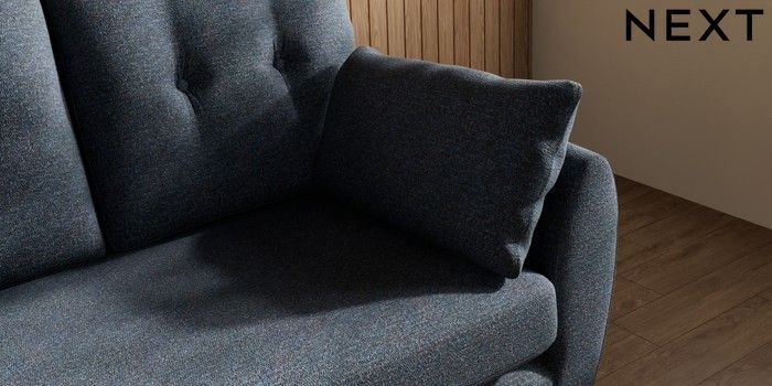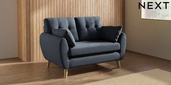7.3.1 Buy Wilson Buttoned Back 2 Seater Small Sofa Tweedy Chenille Navy Blue Retro Tapered - Light from the Next UK online shop