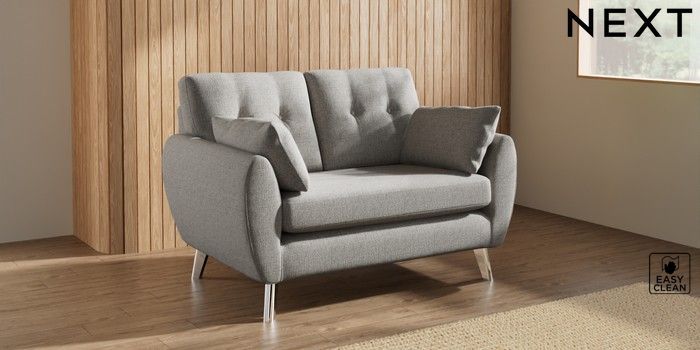7.3.1 Buy Wilson Buttoned Back 2 Seater Small Sofa Woven Chenille Easy Clean Light Grey Metal Tapered - Chrome from the Next UK online shop