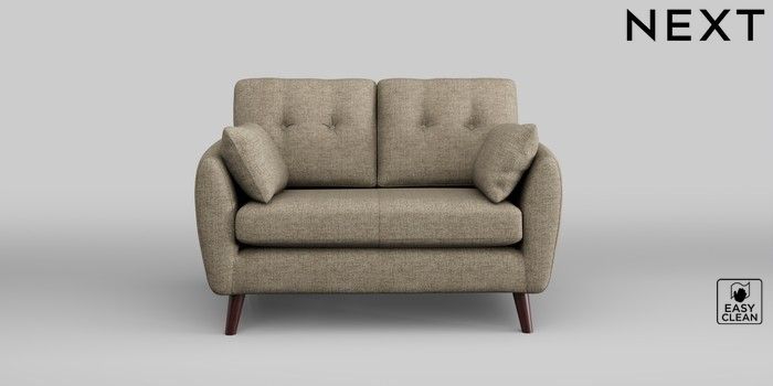 6.12.1 Buy Wilson Buttoned Back 2 Seater Small Sofa Woven Chenille Easy Clean Mid Natural Retro Tapered - Dark Brown from the Next UK online shop Click here to use our accessible website