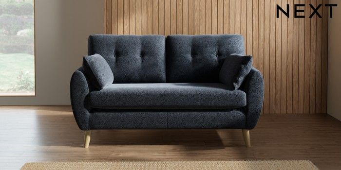 7.2.10 Buy Wilson Buttoned Back 2 Seater Sofa Boucle Chenille Dark Slate Blue Retro Tapered - Light from the Next UK online shop Click here to use our accessible website