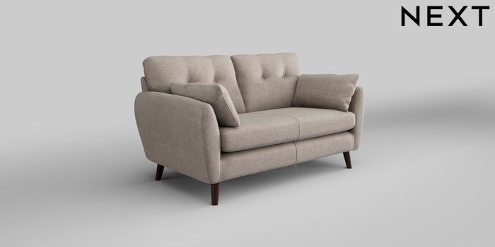 6.12.1 Buy Wilson Buttoned Back 2 Seater Sofa Boucle Chenille Light Natural Retro Tapered - Dark Brown from the Next UK online shop Click here to use our accessible website