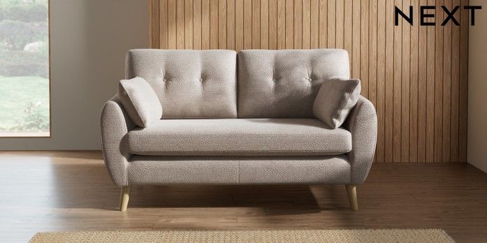 7.2.10 Buy Wilson Buttoned Back 2 Seater Sofa Boucle Chenille Light Natural Retro Tapered - Light from the Next UK online shop Click here to use our accessible website