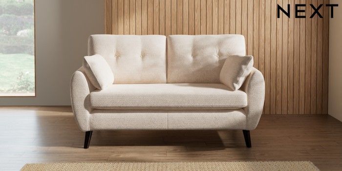 7.2.10 Buy Wilson Buttoned Back 2 Seater Sofa Boucle Chenille Oyster Retro Tapered - Dark from the Next UK online shop Click here to use our accessible website