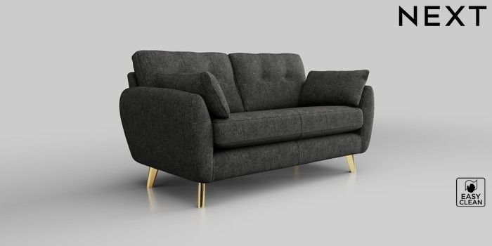 6.12.1 Buy Wilson Buttoned Back 2 Seater Sofa Boucle Weave Easy Clean Charcoal Grey Metal Tapered - Gold from the Next UK online shop Click here to use our accessible website