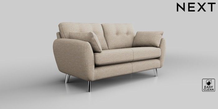 6.12.13 Buy Wilson Buttoned Back 2 Seater Sofa Boucle Weave Easy Clean Dark Natural Metal Tapered - Chrome from the Next UK online shop Click here to use our accessible website