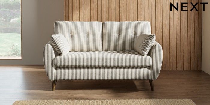 7.2.10 Buy Wilson Buttoned Back 2 Seater Sofa Chenille Stripe Moss Green Retro Tapered - Mid from the Next UK online shop Click here to use our accessible website